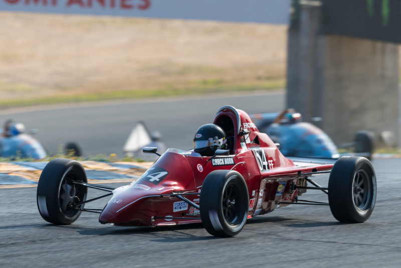 FF is in the middle of a major overhaul. The class was originally designed for the 1600 cc Ford Cortina engine. As time has past the need for a different engine has emerged and several of the participants have converted their cars over to a Honda Fit powerplant. The problem is the conversion is costly and several of the people who have run the class for so long have not converted their cars over. But the people who do show up put on a great show and are always entertaining to watch. Chuck Horn ran 13 races this year and won 11 of them. The guy filling up his mirrors most of the time was Denny Renfrow. Denny won the first two races of the year and race ten at Sonoma Raceway. The Chuck and Denny show is very entertaining and worth taking time out of your weekend for.