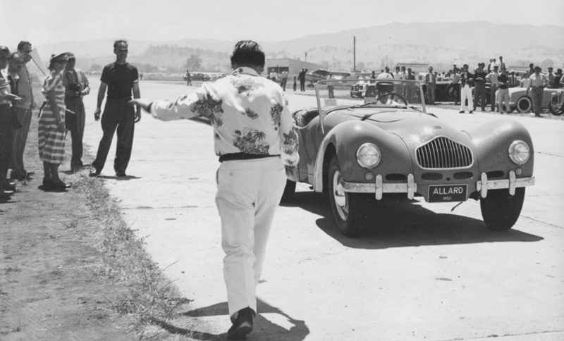 Word of the Allard’s success on the east coast quickly made its way to the west coast were Al Moss brought in the first Allards in 1950 as the West Coast Distributor. The car was a K model two-seater and while the car was in transit from the UK, Moss had his friend Vic Edelbrock build up a Mercury flathead V8. The engine was installed in time for the first Palm Springs races and the car lead the main event driven by Moss’s sales manager Tom Frisbey. Unfortunately the engine overheated but the cars potential was noticed by quite a few others.