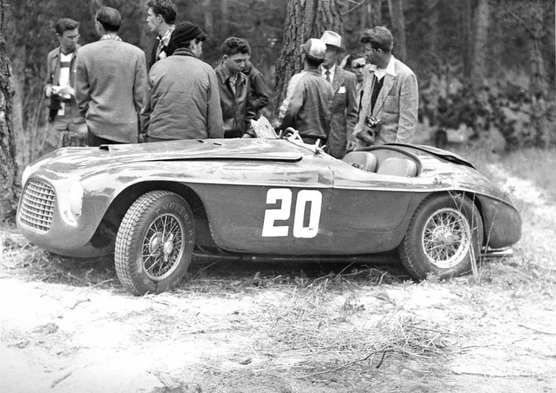 A key name in the history of Ferrari in the U.S. was Luigi Chinetti, an ex-race driver of note in Europe having won LeMans and the 12 Hours of Monthlery plus competing in the Targa Florio and Mille Miglia. He was also a good friend of Enzo Ferrari. While in the U.S. for the 1940 Indy 500, World War II broke out so Chinetti stayed in the U.S., becoming a citizen in 1946. With his connection to Ferrari, he became their importer and sold the first Ferrari to Briggs Cunningham, a Ferrari 166 Spyder Corsa in 1950. Cunningham raced the 166 to Ferrari’s first U.S. overall victory that same year at Suffolk Airport (NY).