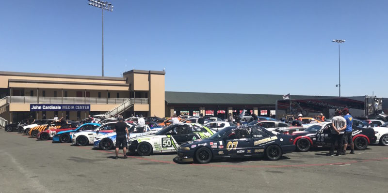 It was a long day but it wasn’t a dull day Saturday for Day Two of the Sonoma Majors and SFR Regional. The day started ten minutes late due to a breaking of the “No engines on before 8am” rule. During the morning the schedule was caught up only to slow down after lunch during the races. The good news is that no drivers were hurt. However, several cars were. And the subsequent wear and tear, towing, debris cleanup, and repairing of tire walls and barriers took its toll on the schedule. We were on a Follow-By Schedule, so technically we didn’t run overtime. But finally we called it a day and headed to Worker Camping for a big, delicious pot-luck dinner, prepared by various regional chefs.