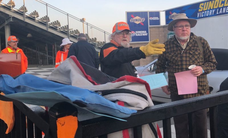 Gene Peters, the new Paddock Marshal and self-appointed helper for the Social Crew was selected by the Announce Crew as Worker of the Weekend. He helped with the early setup on Thursday before the track test day, set up the paddock for the races, and did double duty being the Social Crew for the weekend. The Announce Crew made an exception in naming a second worker for her hard work all weekend – Jess Ann Link, Course Marshal Chief. Saturday she trained a newbie – her only crew; and Sunday she worked alone, and there was a fair amount of hot course cleanup. Turn 11 might well have been renamed Pigpen for the number of times a car hit the tires and spilled water and fluids causing rebanding and lots of sweeping. She worked alone getting the track setup and picked up equipment Sunday afternoon. The corner workers helped out at days end by bringing in their items.